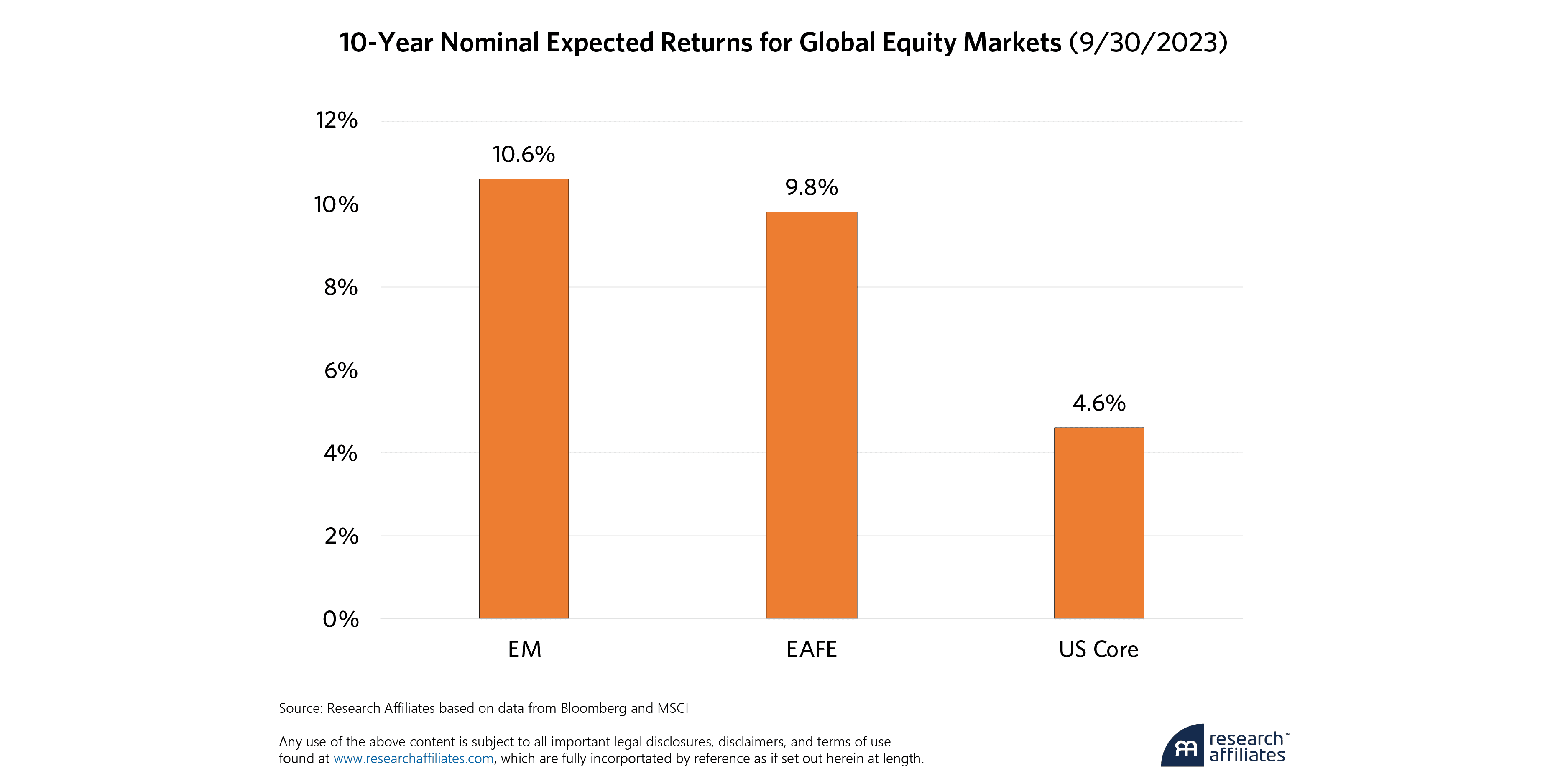 Twenty years ago, emerging market balance sheets were in much worse shape than those in developed markets. That dichotomy has been shifting over the past decades as EM economies have learned from their mistakes and demonstrated much better fiscal and monetary restraint compared to both the past and to many of their developed market counterparts today. EM policymakers raised rates earlier and got inflation under control with less fallout than in past episodes. The emerging markets enjoy access to commodities in high demand, providing a natural base of growth, and their capital markets are poised to rebound from oversold conditions due to years of under-allocation.