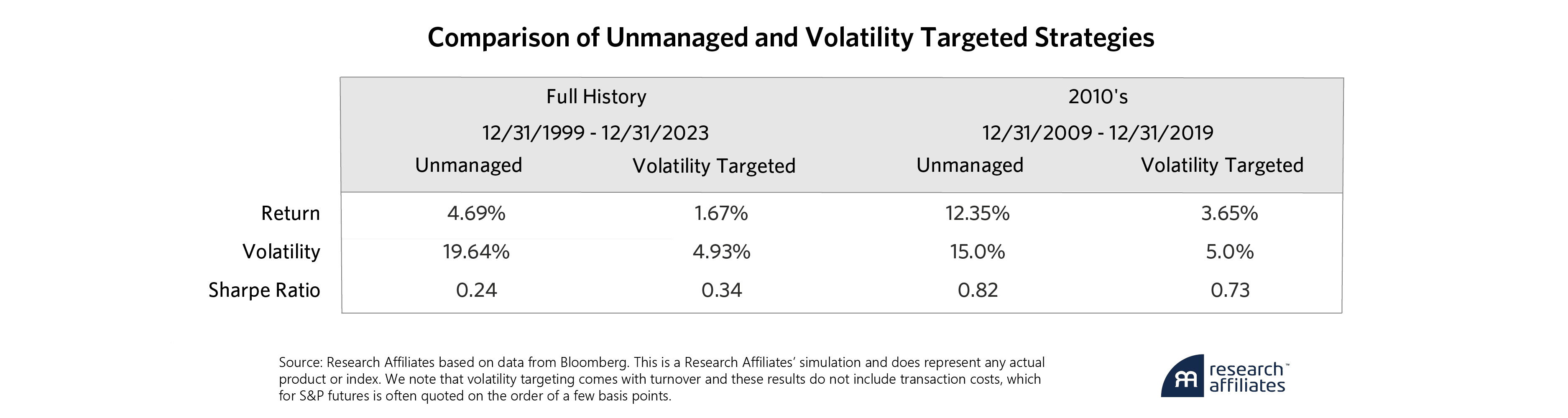As with most things in academic finance, the study of portfolio volatility targeting started with equity portfolios. More recently however, investors, including Research Affiliates, have started utilizing this tool in multi-asset portfolios, providing diversification benefits across equities, bonds and commodities while keeping volatility within a manageable range.