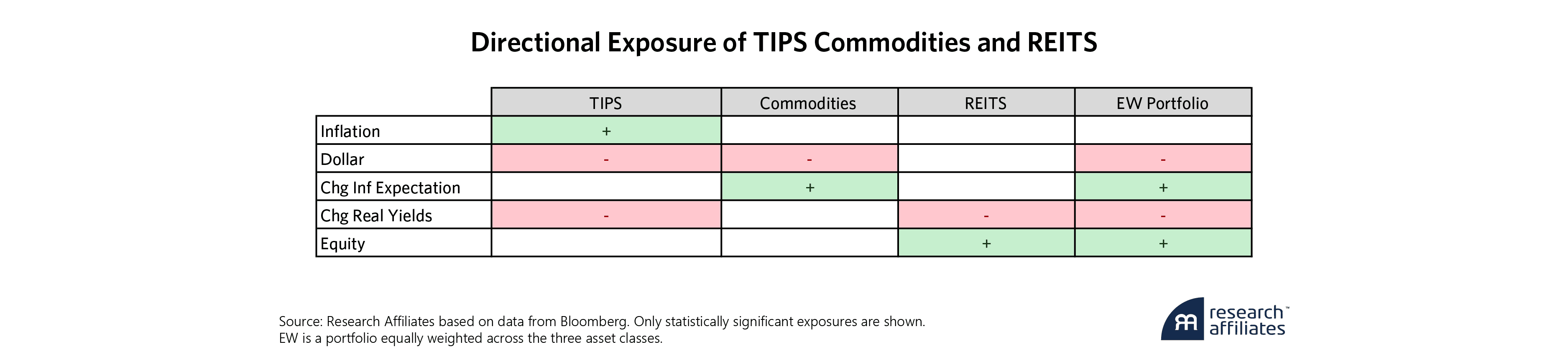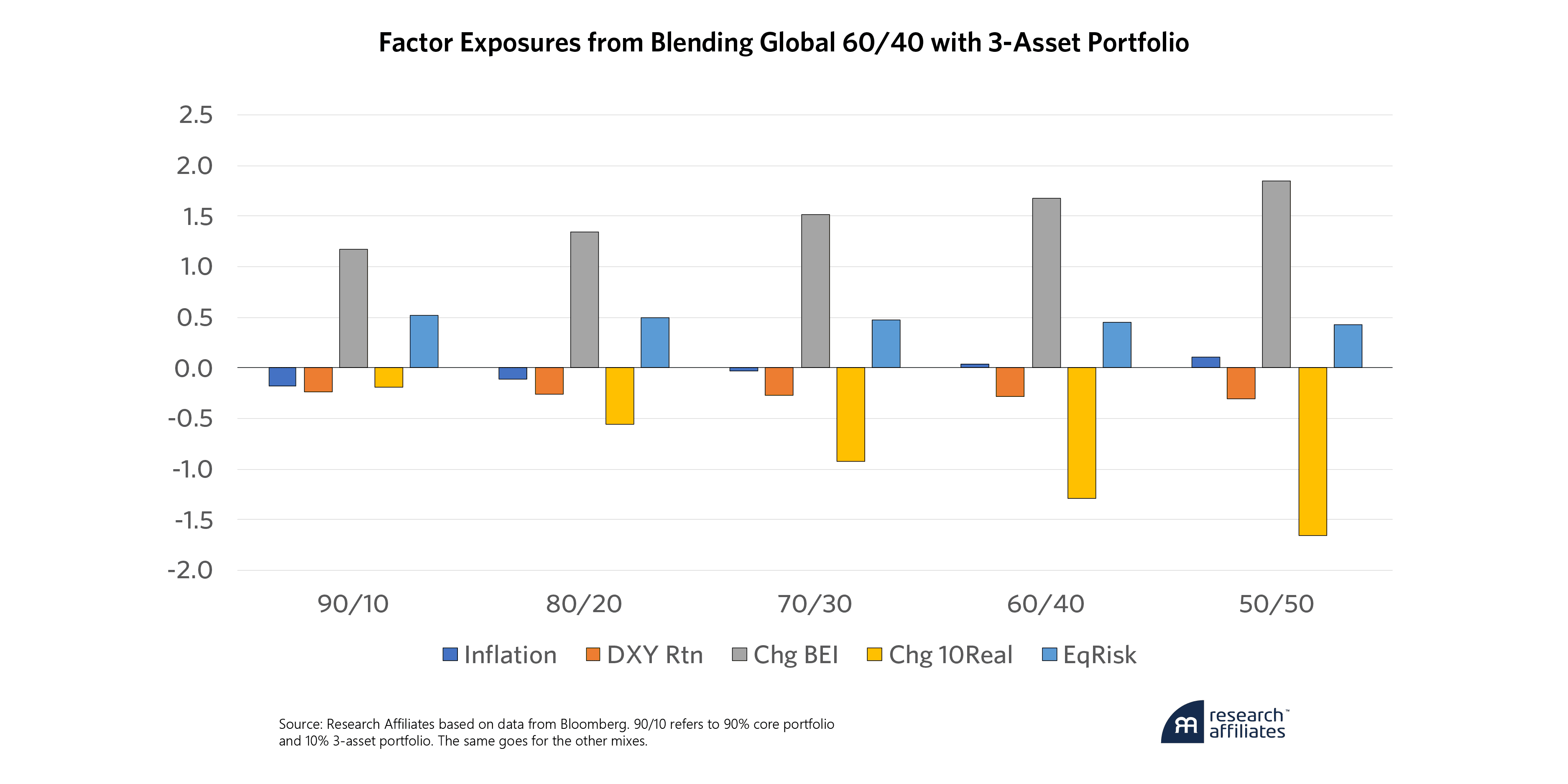 Creating an equal blend of these assets maintains the individual asset exposures with the exception of realized inflation which becomes insignificant. Again, this reiterates that only a large exposure to TIPS, and at times commodities, will protect against realized inflation, and this assumes other factors remain constant6.