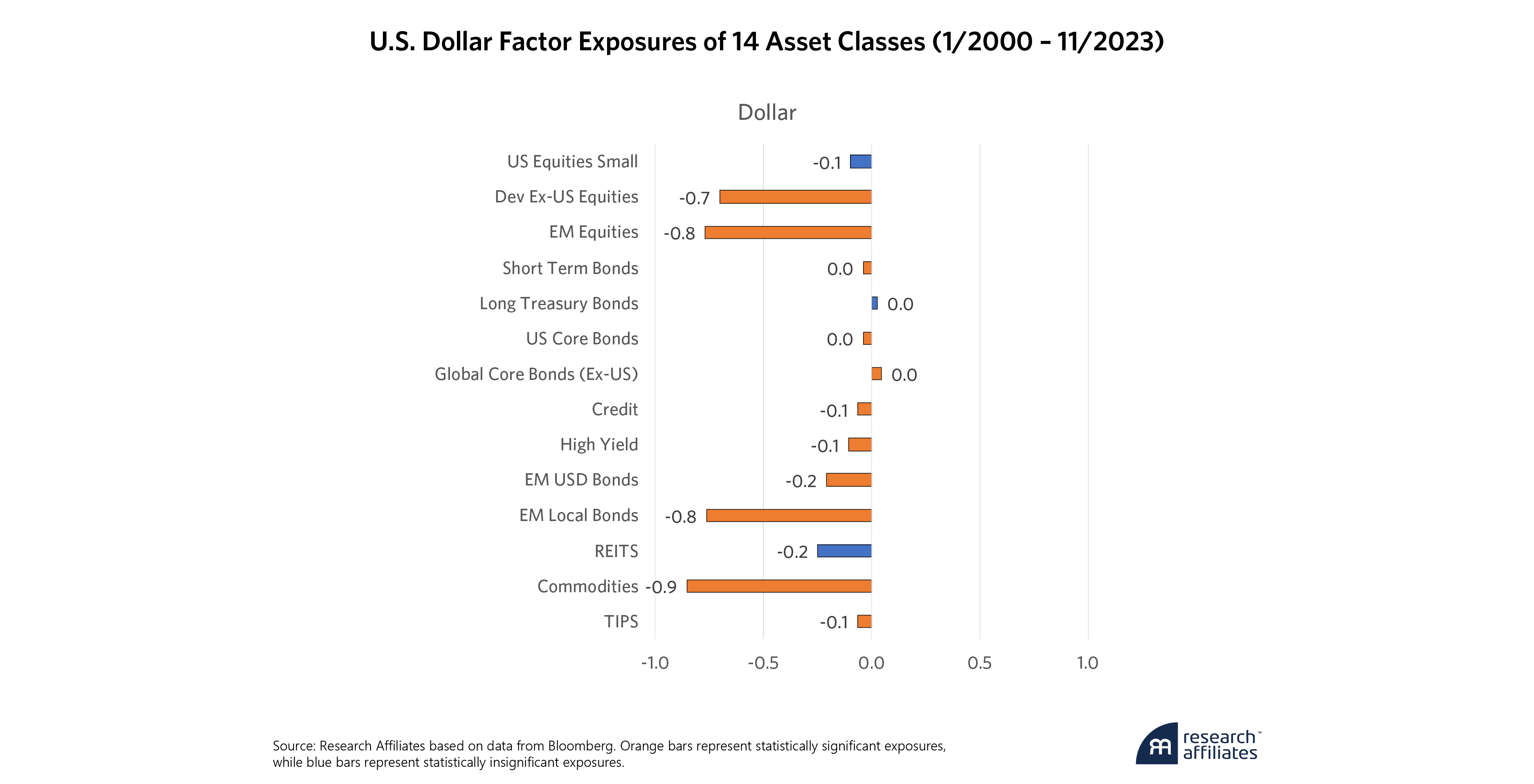 As we explain in The Buck Stops Here, the dollar’s direction is an important consideration in portfolio positioning because of the asymmetric relationship between global asset returns and the price of the US dollar.