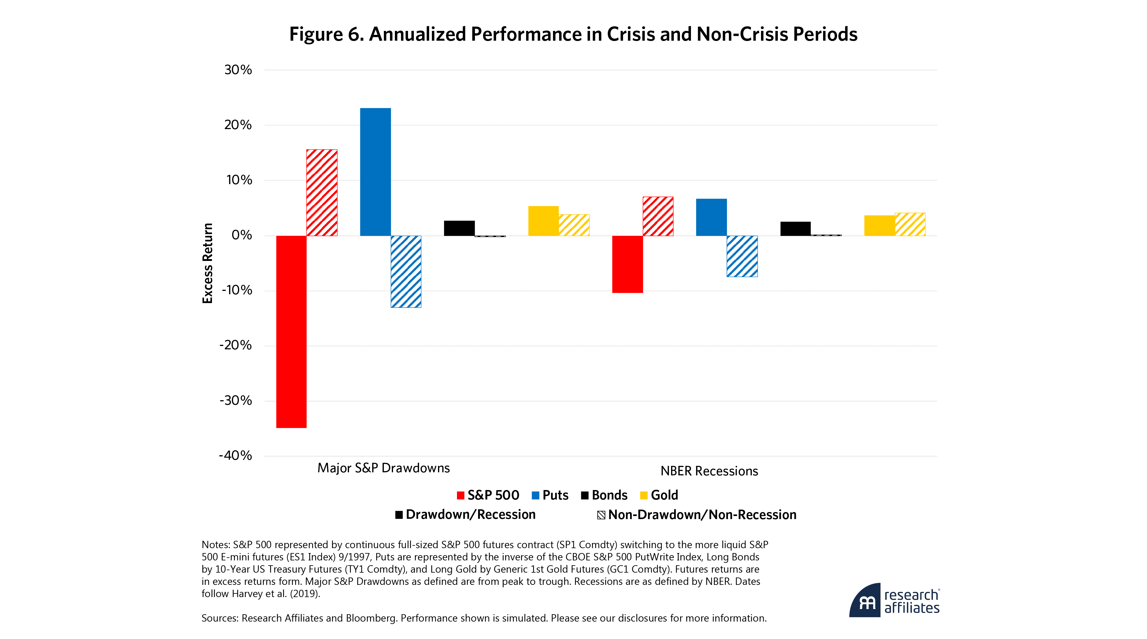 This low correlation qualifies gold as one among a class of assets and strategies that provide protection in market drawdowns, inflationary episodes, and recessions. But gold should not be the only asset in this sleeve. Diversified commodity portfolios, inflation-protected bonds, and such positive convexity strategies as long put options and trend-following strategies may offer similar downside protection.