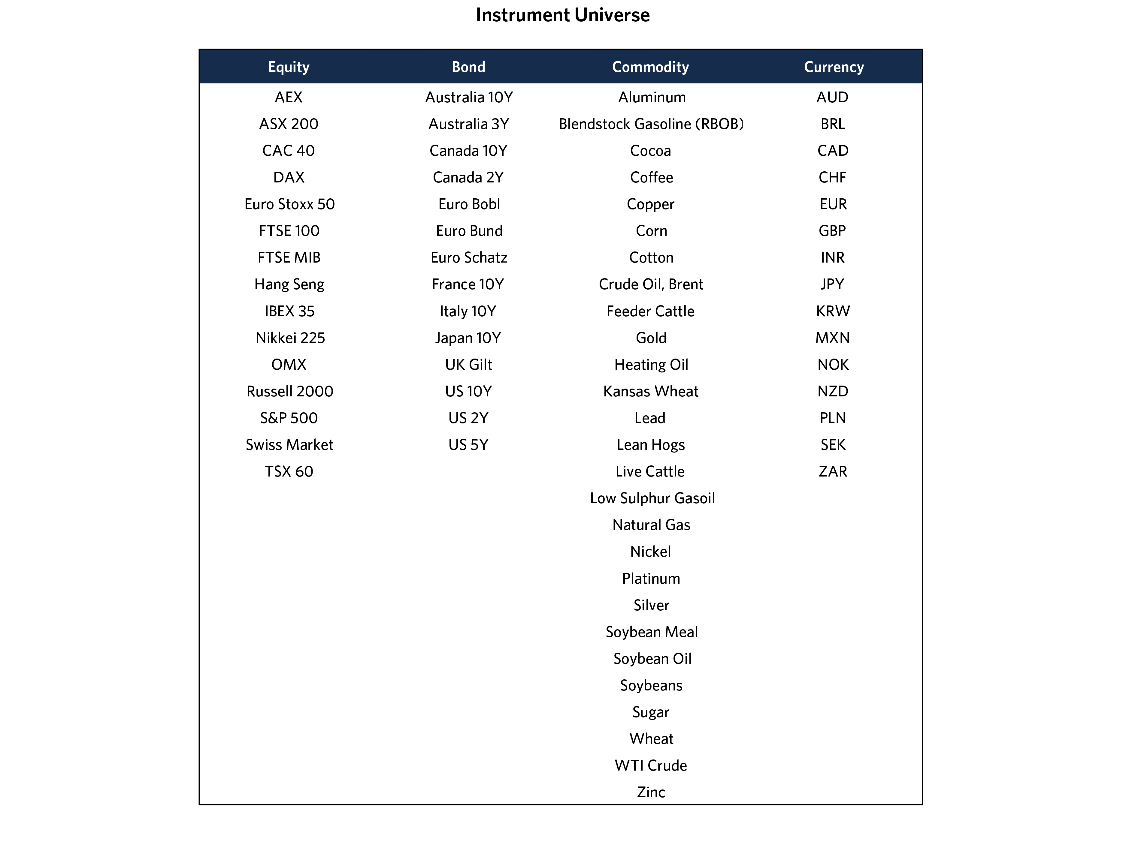 5. See Appendix for a list of all instruments in the universe.