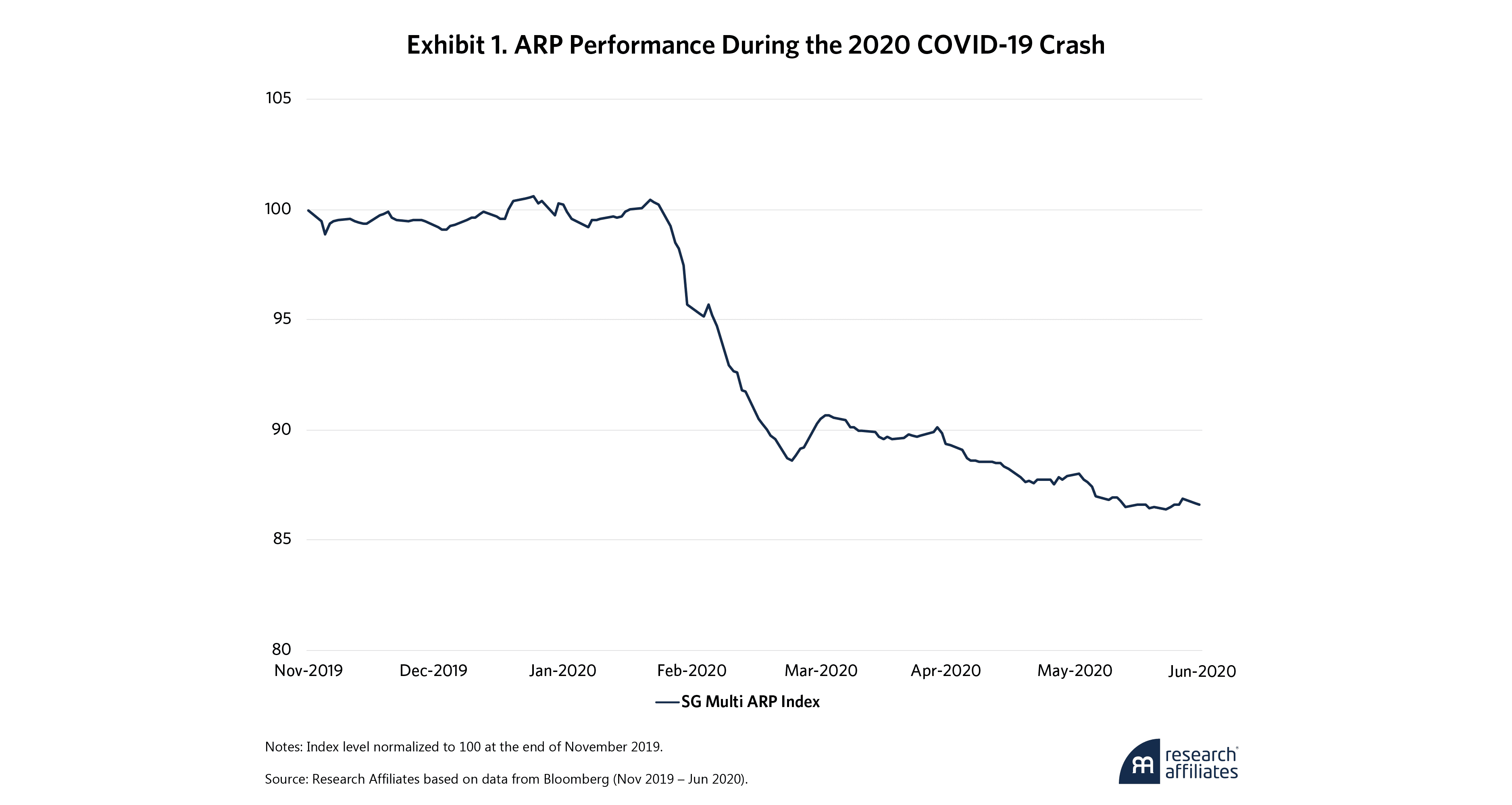 Recall the tumult when COVID-19’s impacts began to materialize around the globe. Investors fled to safety, causing broad, double-digit equity market crashes. How did low-beta ARP strategies perform during these times? As Exhibit 1 shows, not very well. The SG Multi Alternative Risk Premia Index, comprised of various ARP funds, fell more than 10% in March 2020. To put that in perspective, the index’s trailing one-year volatility, from March 2019 to February 2020, was only 4.4%. It is doubtful this reflected these strategies’ desired risk profiles.