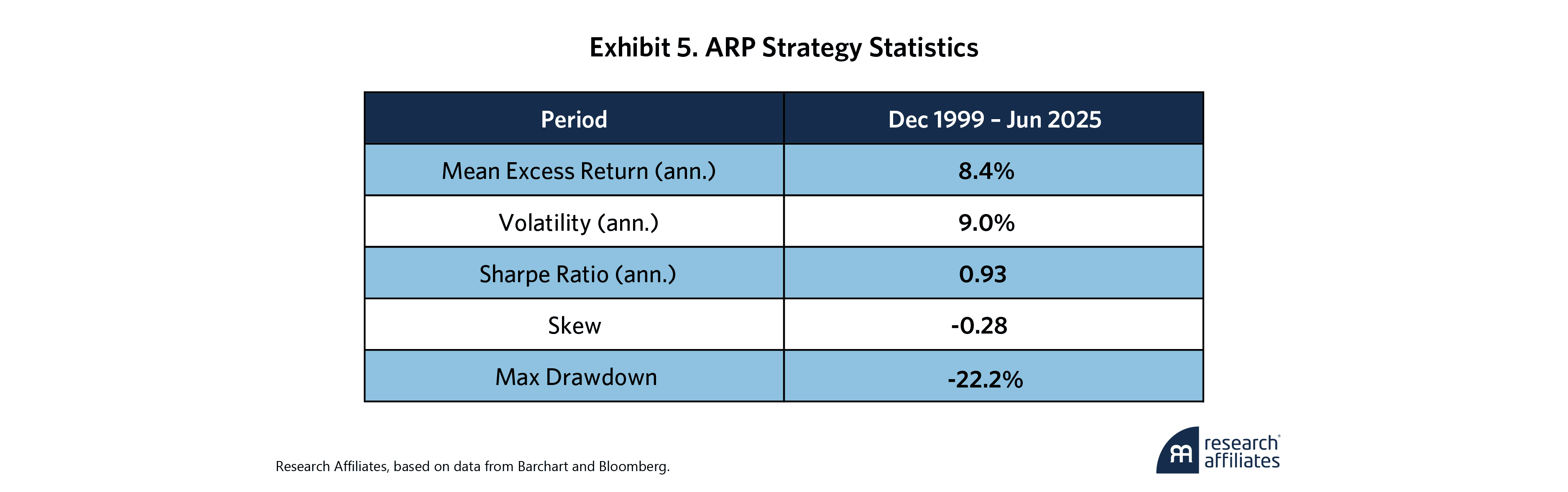 Exhibit 6 shows how the original ARP strategy and the stop-loss applied versions compare based on different stop and reentry parameters.