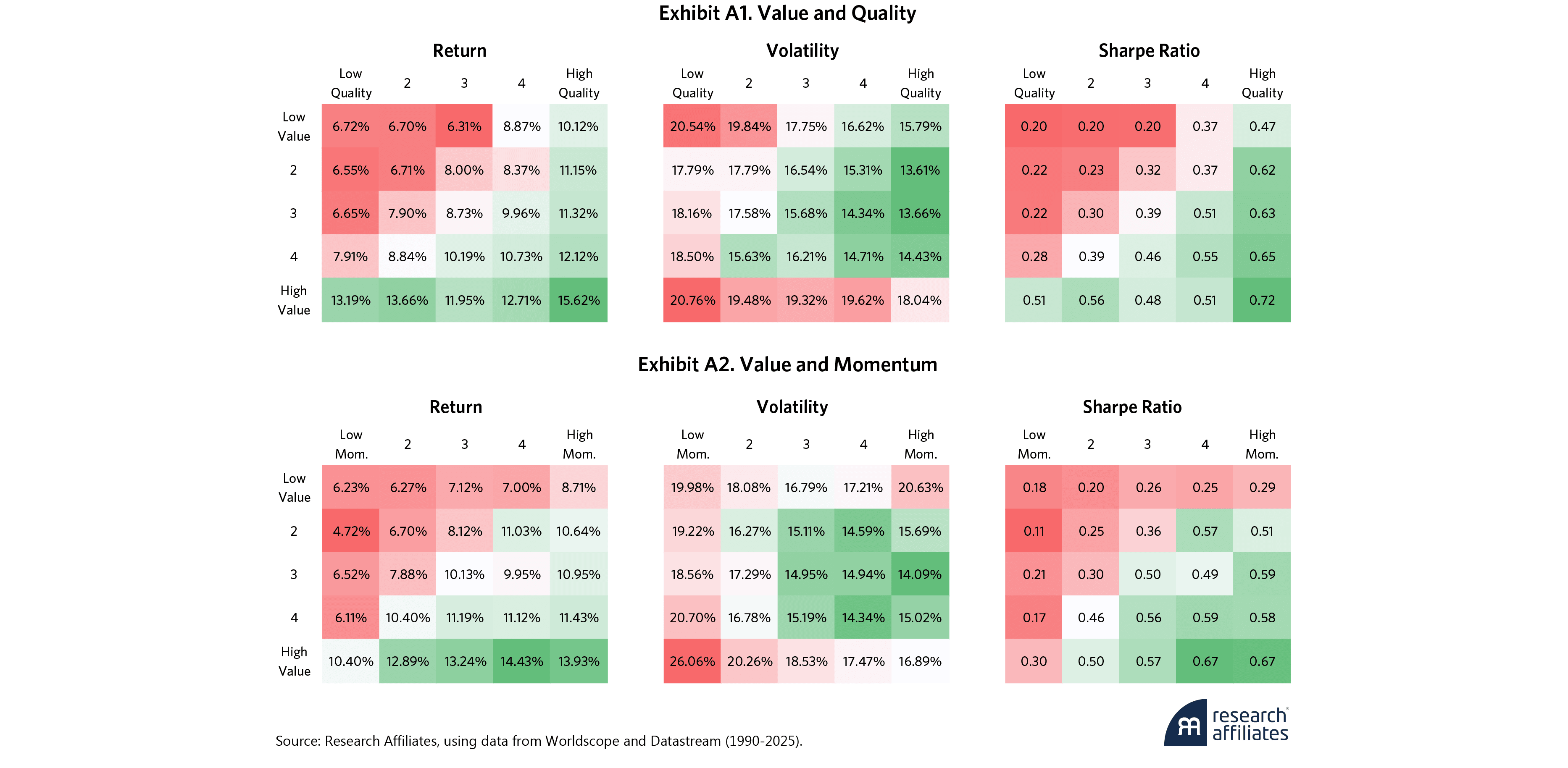 Value, quality, and momentum are economically distinct and imperfectly correlated. This diversification of alpha sources can improve robustness across regimes.