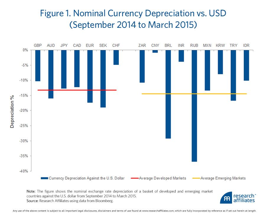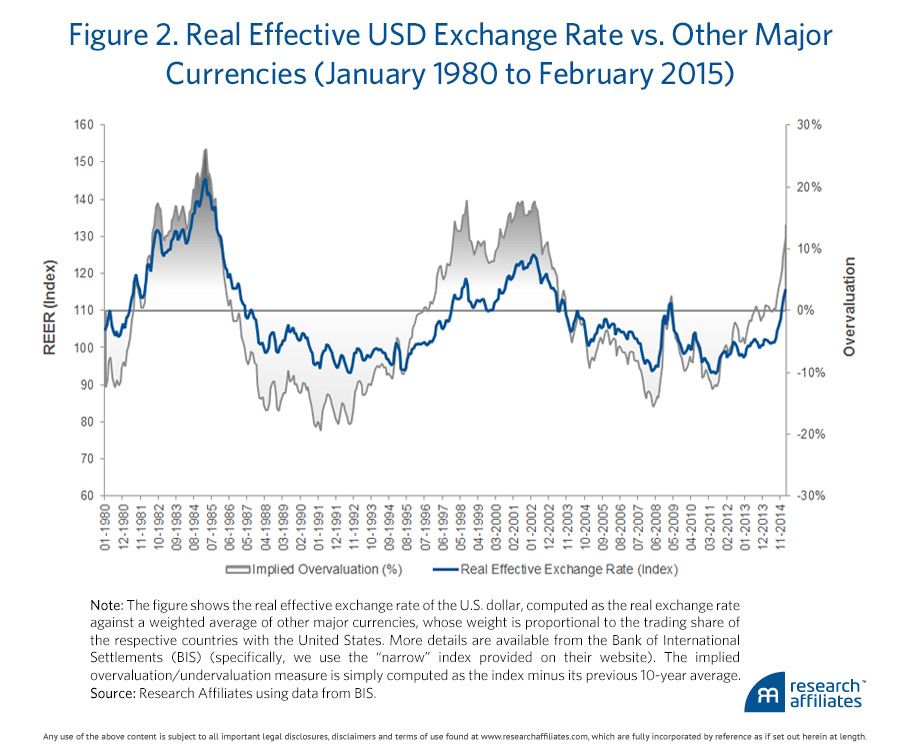 The resurgence of the U.S. dollar has been one of the leading investment stories of the last few quarters. A somewhat modest recovery in the United States has galvanized investors, who appear to believe once again in the currency version of the American dream. In contrast, headlines about the Eurozone malaise, the failed jump-start of the Japanese economy, and slowing growth in the emerging markets vindicate further depreciation in their respective currencies. No wonder strategists are forecasting further appreciation of the dollar (Ramage, 2015).