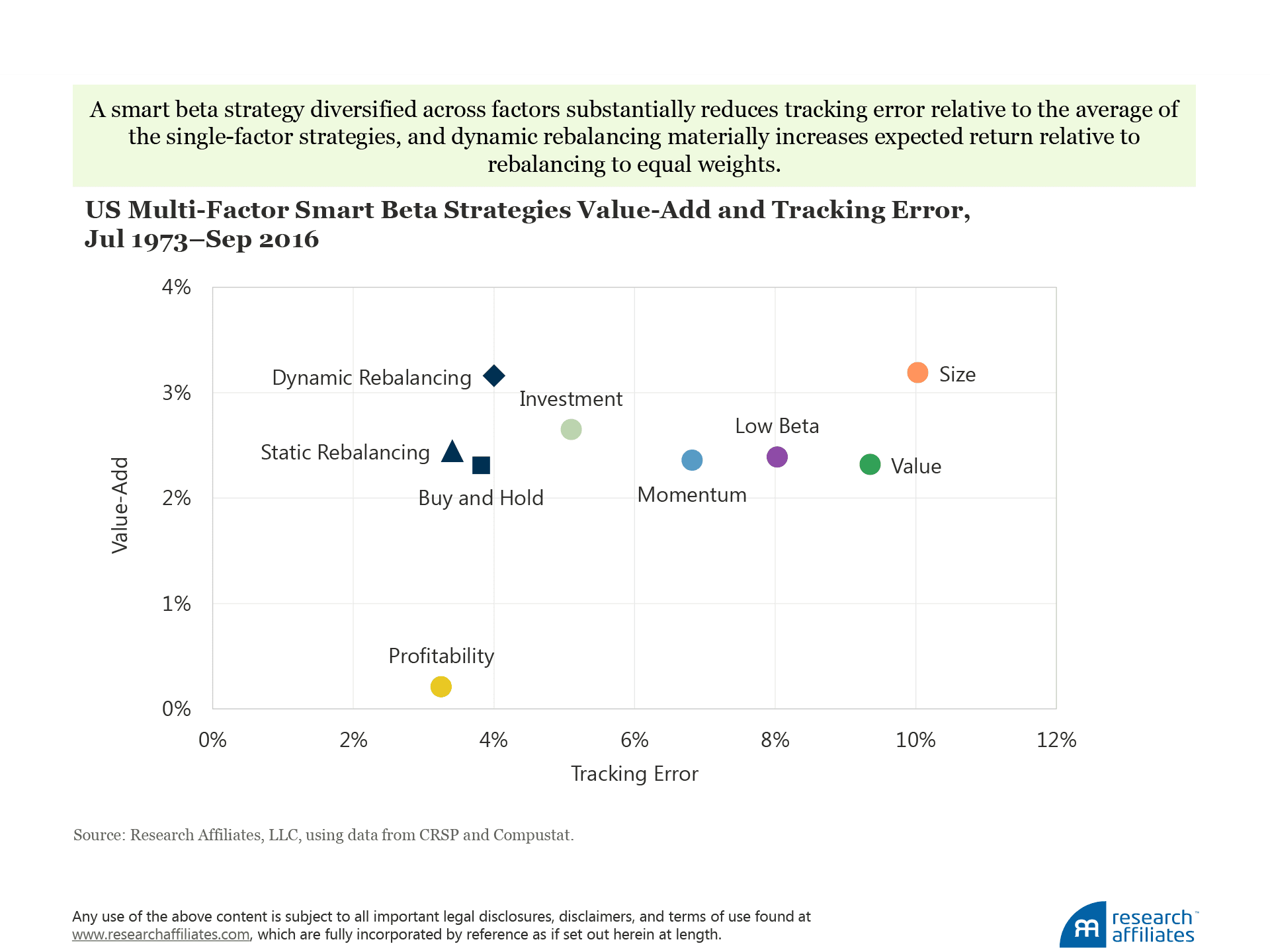 To maximize risk-adjusted returns, diversify across smart beta strategies that access the value, low beta, profitability, investment, momentum, and size factors.