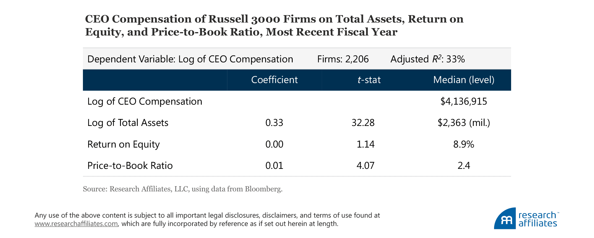 13. This regression is by no means meant to be conclusive; in particular, because it is based on just one cross-section of data and does not account for how these relationships may have changed over time. The regression is only meant to illustrate the incentive to grow assets that is faced by CEOs and that may create unintended consequences for investors.
