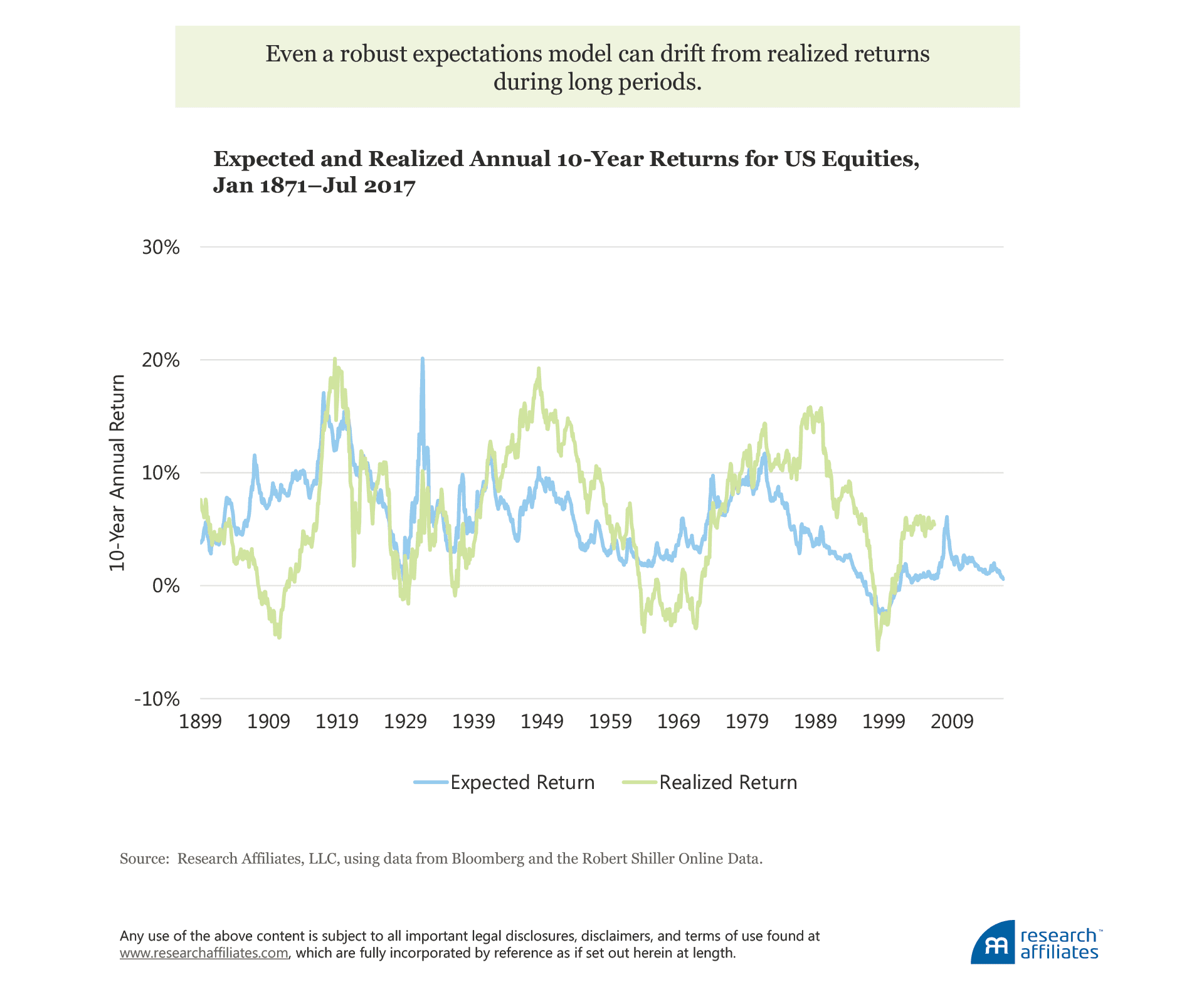 In this article, we review the genesis behind the long-term framework Research Affiliates uses to generate return expectations, illustrating with a straightforward portfolio of stocks and government bonds, although the framework is in no way limited to those assets. We show a simple example of how these expectations, noisy as they can sometimes be, could have been used historically to create a portfolio able to outperform an equally simple 60/40 benchmark.