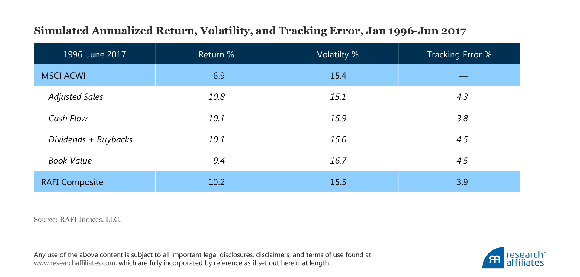 We believe an awareness of the tangible, impactful craftsmanship criteria used in a product’s design, coupled with the Research Affiliates online smart beta and asset allocation interactive tools, can improve long-run investment outcomes. As Yogi Berra once humorously quipped, “In theory there is no difference between theory and practice. In practice there is.” We couldn’t agree more.