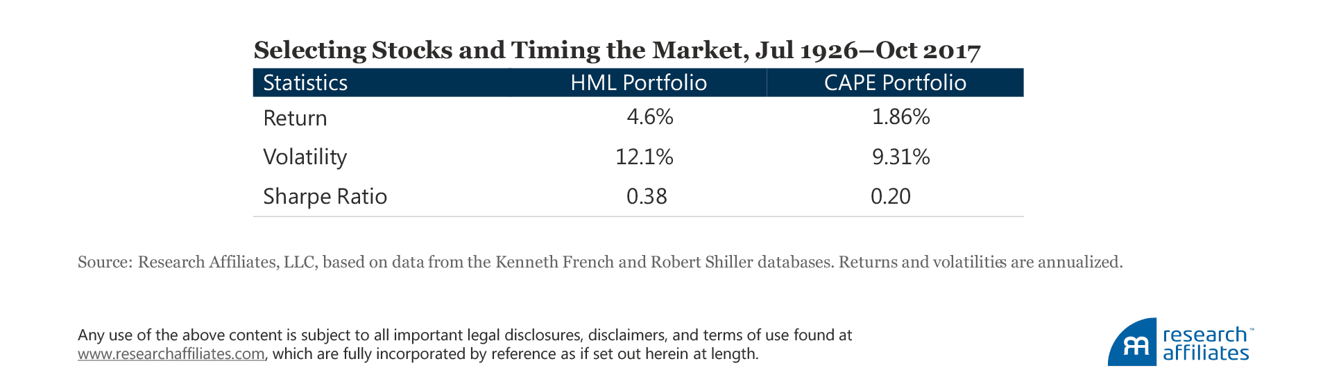 5. Of course, our simple HML and CAPE portfolios are meant to be illustrative, and readers should not conclude that these types of timing strategies are doomed to underperform going forward or cannot be improved. For instance, we refer readers to Aked, Mazzoleni, and Shakernia (2017) and Arnott, Kalesnik, and Masturzo (2018).