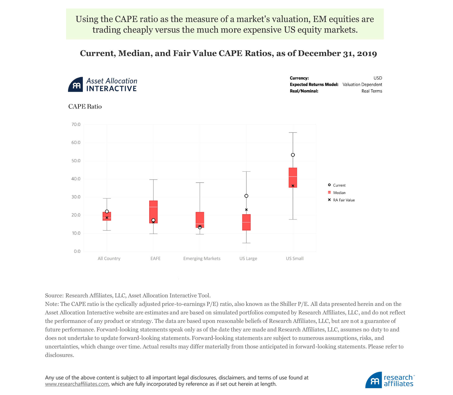 Research Affiliates AAI allows users to toggle between historical figures and forward-looking expectations, making the contrast between forecasts and nowcasts strikingly clear.