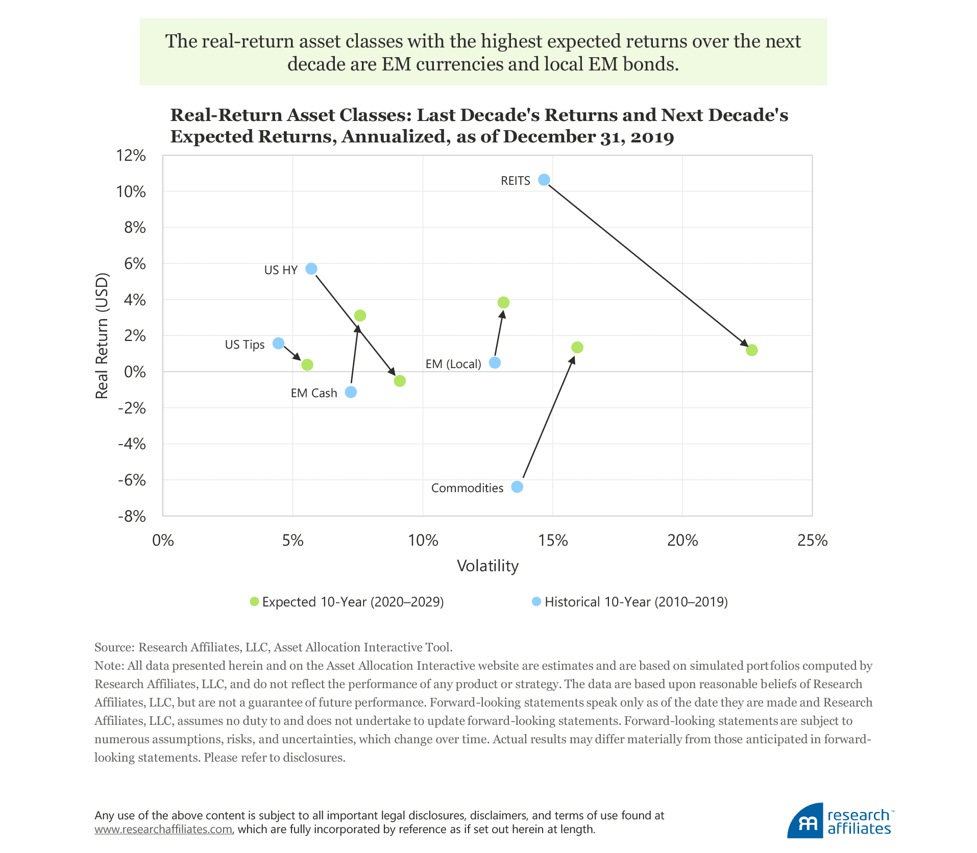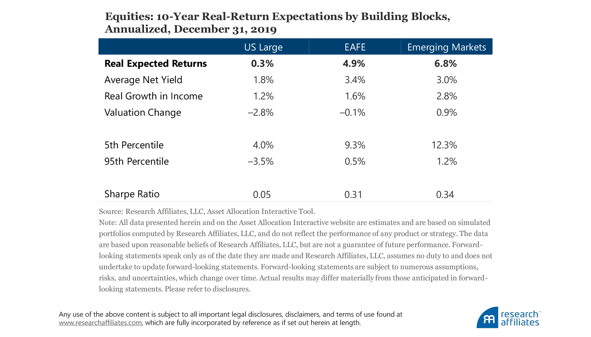 In addition to the asset classes we discuss in this article, the Research Affiliates AAI site covers the major asset classes of credit, linkers, commodities, hedge funds, and private equity. The Full Asset Mode allows visitors to explore over 130 assets, such as single commodities and national equity and cash markets.