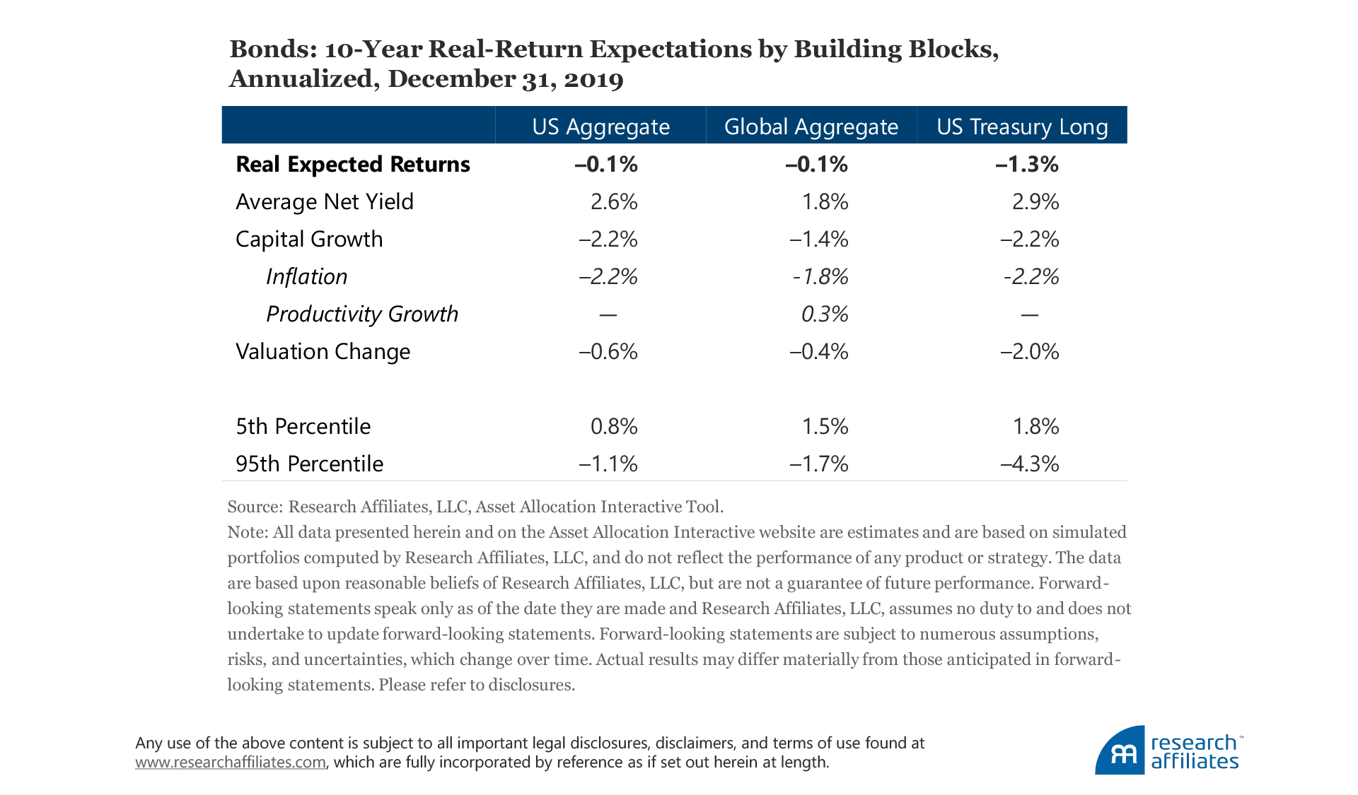 Let’s turn to charts and data from the Research Affiliates Asset Allocation Interactive (AAI) site to discuss robust and transparent expectations for global capital markets across the mainstream asset classes of core bonds and equities.8