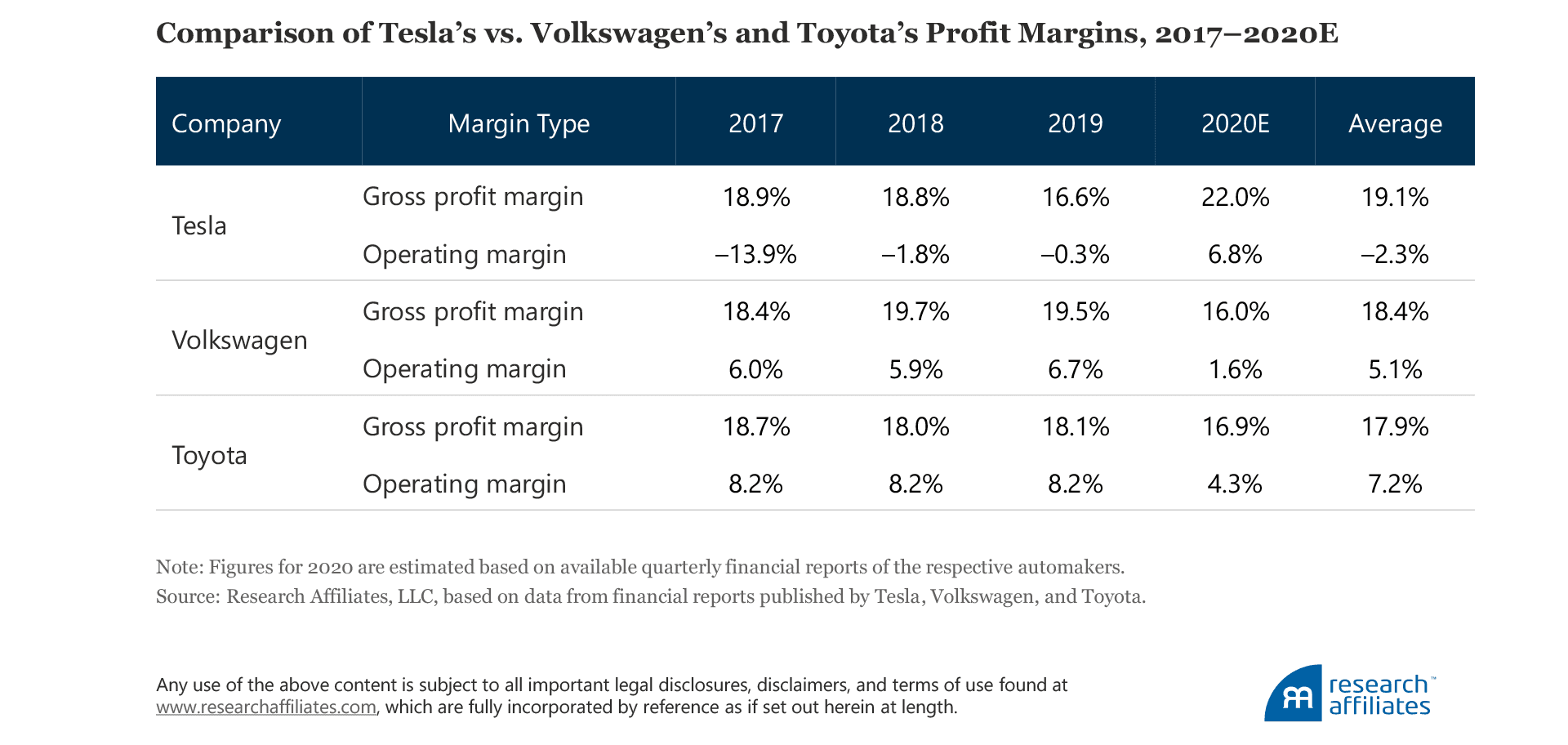 Tesla just turned profitable in 2020, which is good news for Tesla as a company because it no longer faces immediate threats of violating its loan covenants. At the same time, however, its gross margins are roughly on par with those of Toyota or Volkswagen—the industry leaders—and this is bad news for Tesla’s share price. In 2020, the year the COVID-19 pandemic swept the globe, Tesla’s net margins benefited from carbon credit sales far more than from auto sales. Can its net margin soar from current levels? That’s not as straightforward an analysis as extrapolating the recent trend.