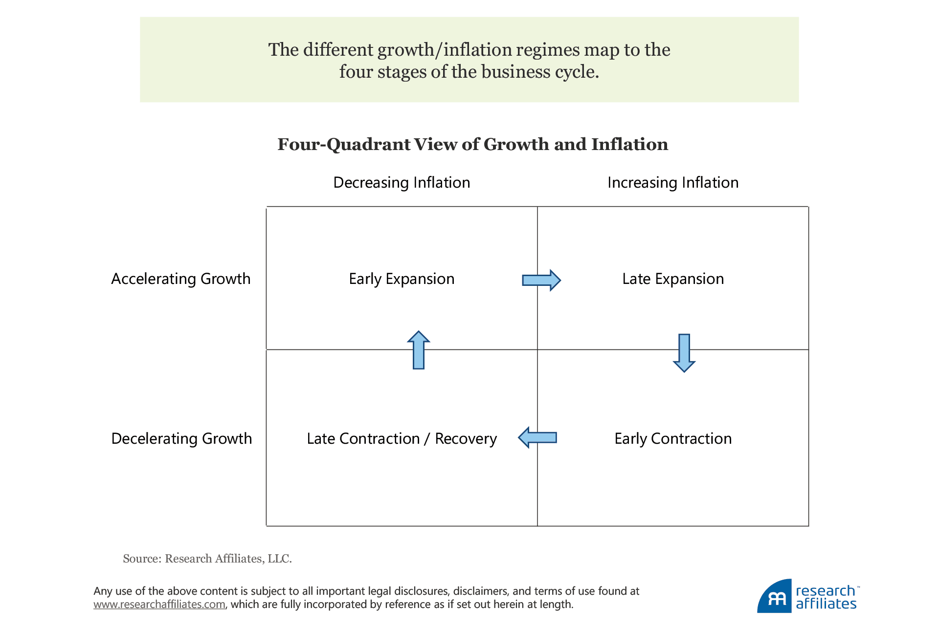 We show in a multi-asset context that different asset classes have varying sensitivities to changes in growth and inflation. We also show that a strategy that employs these two metrics and currently available market data (i.e., no forecasting) can outperform a simple equally weighted portfolio. We find that a great deal of information about future asset returns is available just by knowing the current stage of the business cycle. Our results help illustrate why growth and inflation are informative to asset returns and open the door to more-advanced forecasting techniques that can capture the additional theoretical benefits in knowing which business-cycle stage is up next.2
