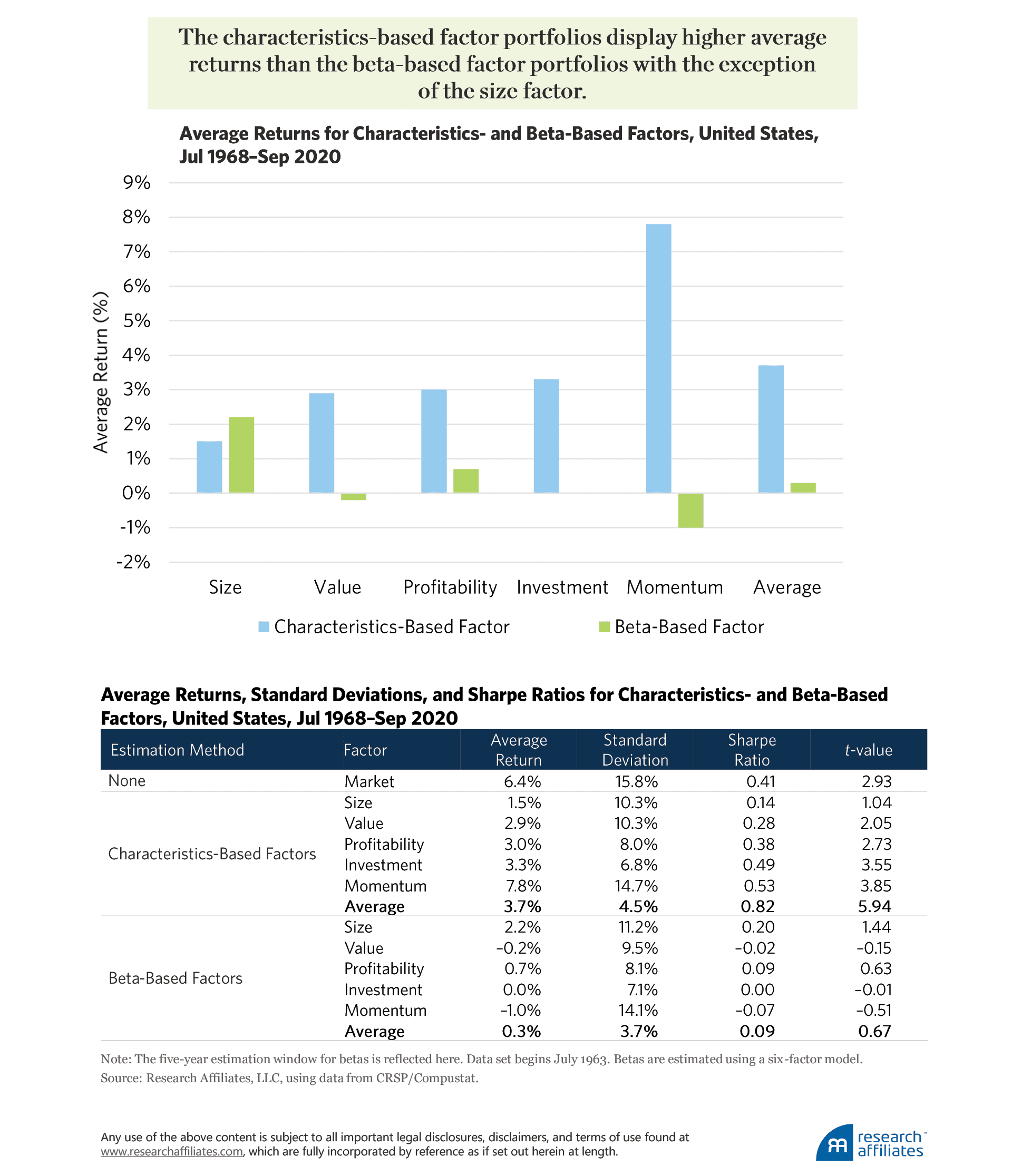 We have shown that beta-based factors can benefit both constrained and unconstrained investors. The benefit is consistent with how the two types of metrics—characteristics and betas—forecast future returns and risks. Investors cannot earn higher risk-adjusted returns by tilting toward beta-based factors, but they can benefit by using them to hedge risks.