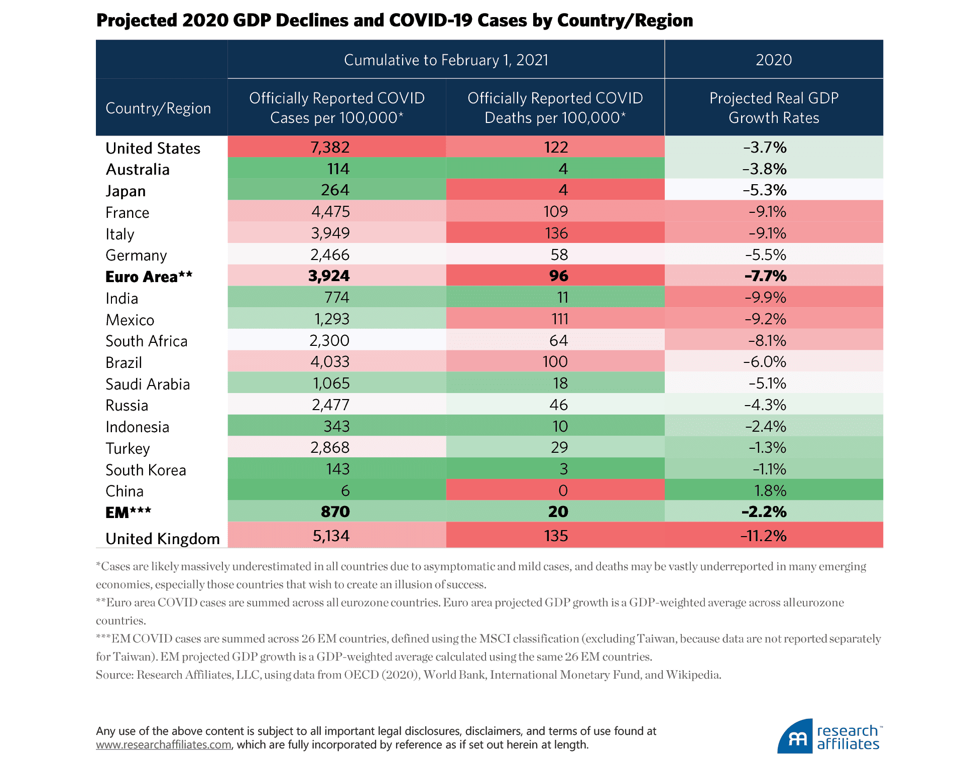 The spread of COVID-19, the resulting lockdowns, and the ultimate impact on national and regional economies have been far from evenly experienced around the world. The developed nations of Italy, the United States, and the United Kingdom and the EM nations of Mexico, Brazil, and South Africa suffered some of the most devastating personal and economic tolls of COVID-19.