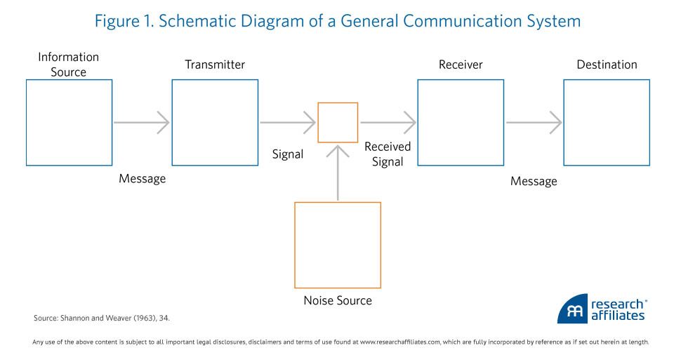 One important version of contrarian investment theory sees security prices as “noisy.” In information theory, noise in a transmission channel distorts the information-bearing signal. (Figure 1.) Think of static interfering with a radio broadcast.