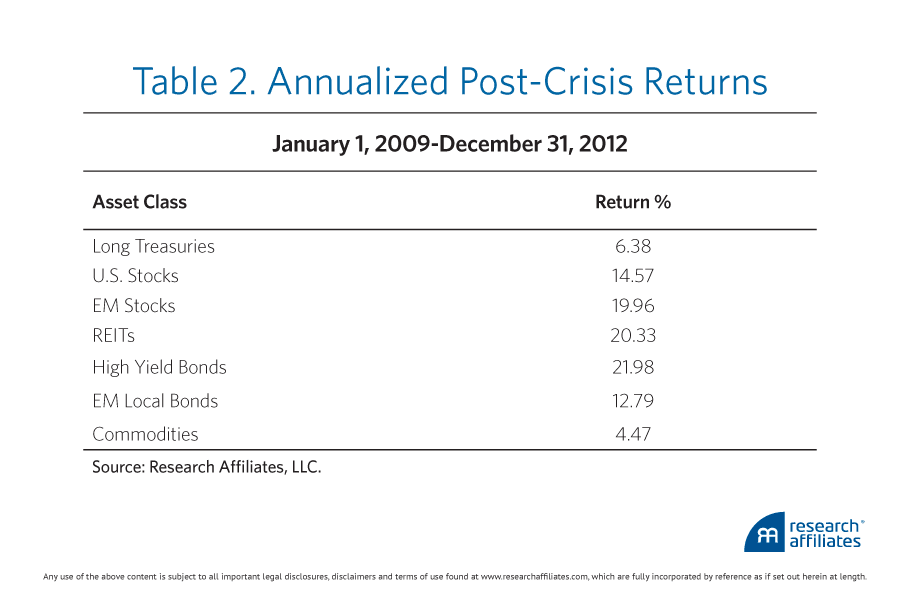 Thus flow induced price declines can be viewed as buying opportunities. As the carry trade unwinds and the hot money leaves, gone too will be the unnatural positive correlation between Treasury bonds and pro-cyclical assets. Correlations will return to the norm, and so, too, will the diversification benefits of a globally diversified multi-asset portfolio.