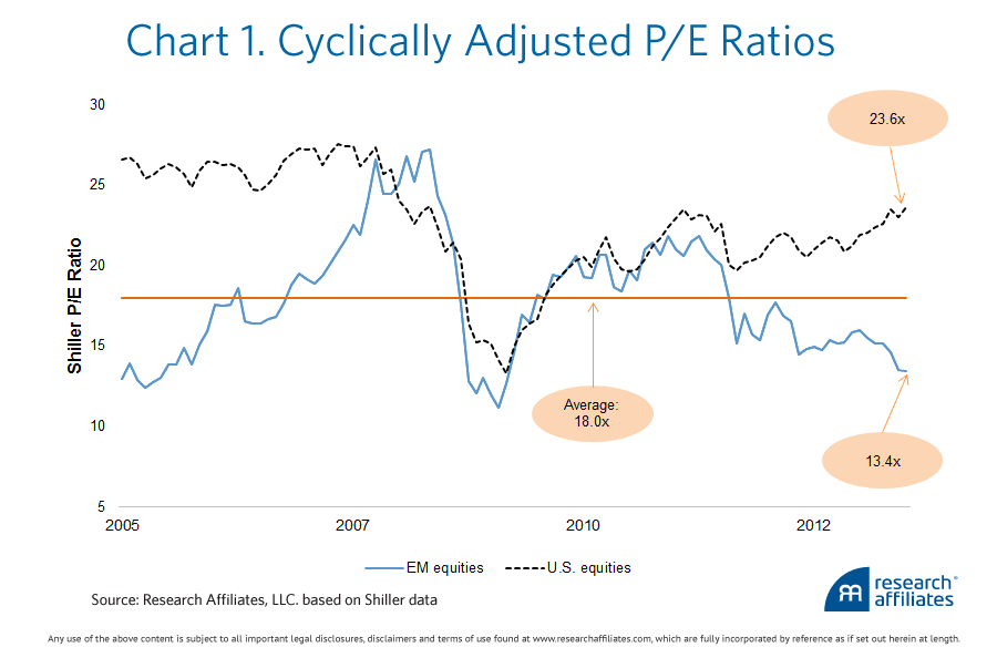 Nonetheless, eventually prices are set by fundamentals, even if in the short-run liquidity and flows can push prices away from fair valuation. Ben Graham’s famous analogy captures this combination of long-term and short-term dynamics: the market is ultimately a weighing machine in spite of its more transient role as a voting machine. Knowing the estimated long-term valuation allows investors to profit from short-term over- and under-adjustments. As carry strategies are reversed and the ensuing momentum is driven by hot money, rising rates will continue to cause price declines for nearly all asset classes. This can mean buying opportunities for investors looking to take positions in pro-cyclical risk assets as the U.S. and global economy slowly regain their footings.
