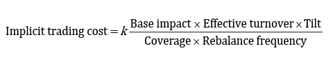 Implicit trading costs cannot be observed directly but they can be estimated. As to measure is to manage, let’s outline the drivers behind our implicit trading cost model: